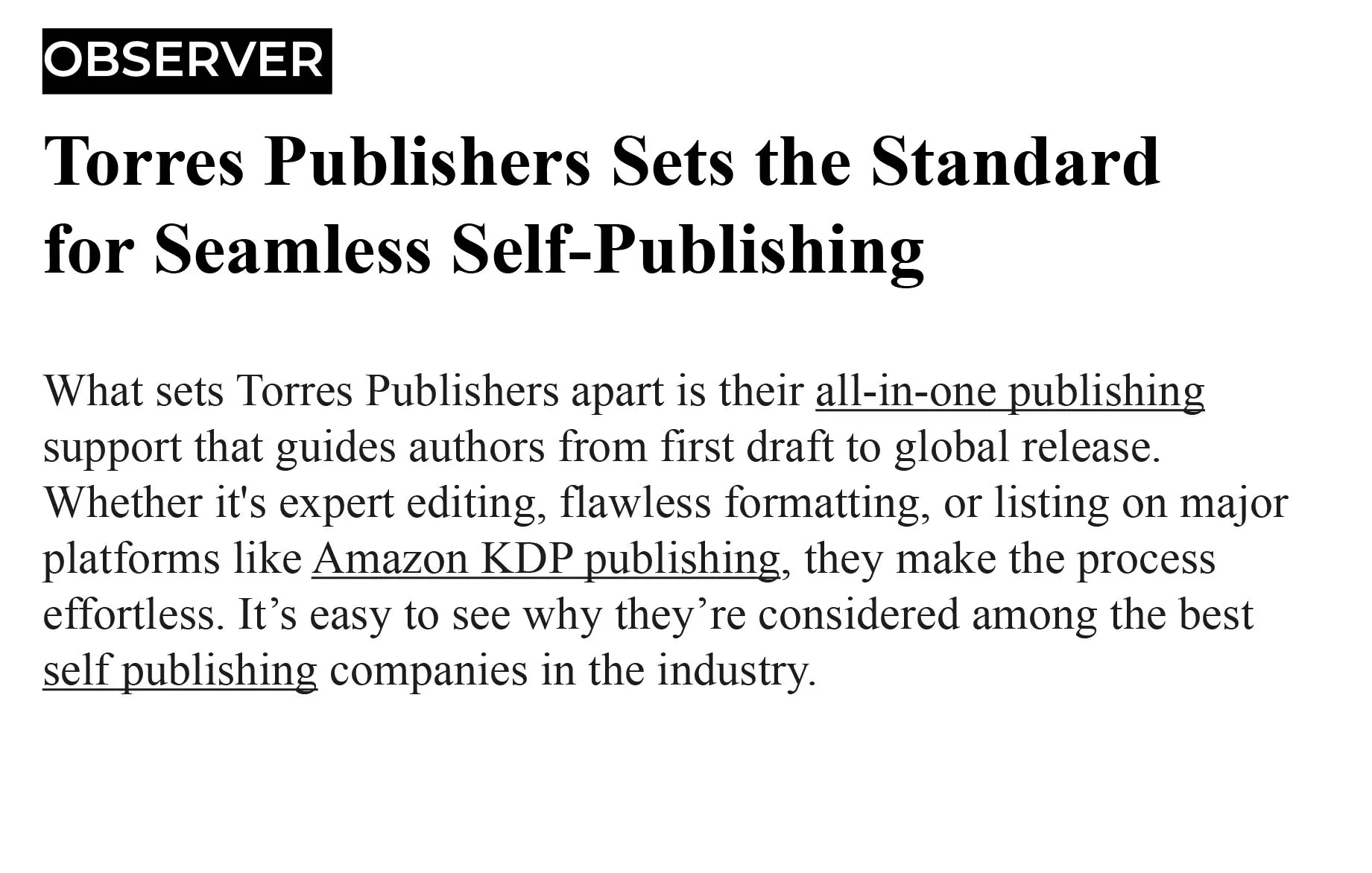 We publish your book with precision, ensuring it’s professionally edited, designed, and distributed. The Torres Publishers team supports book publishers new authors by guiding every step of the publishing journey.